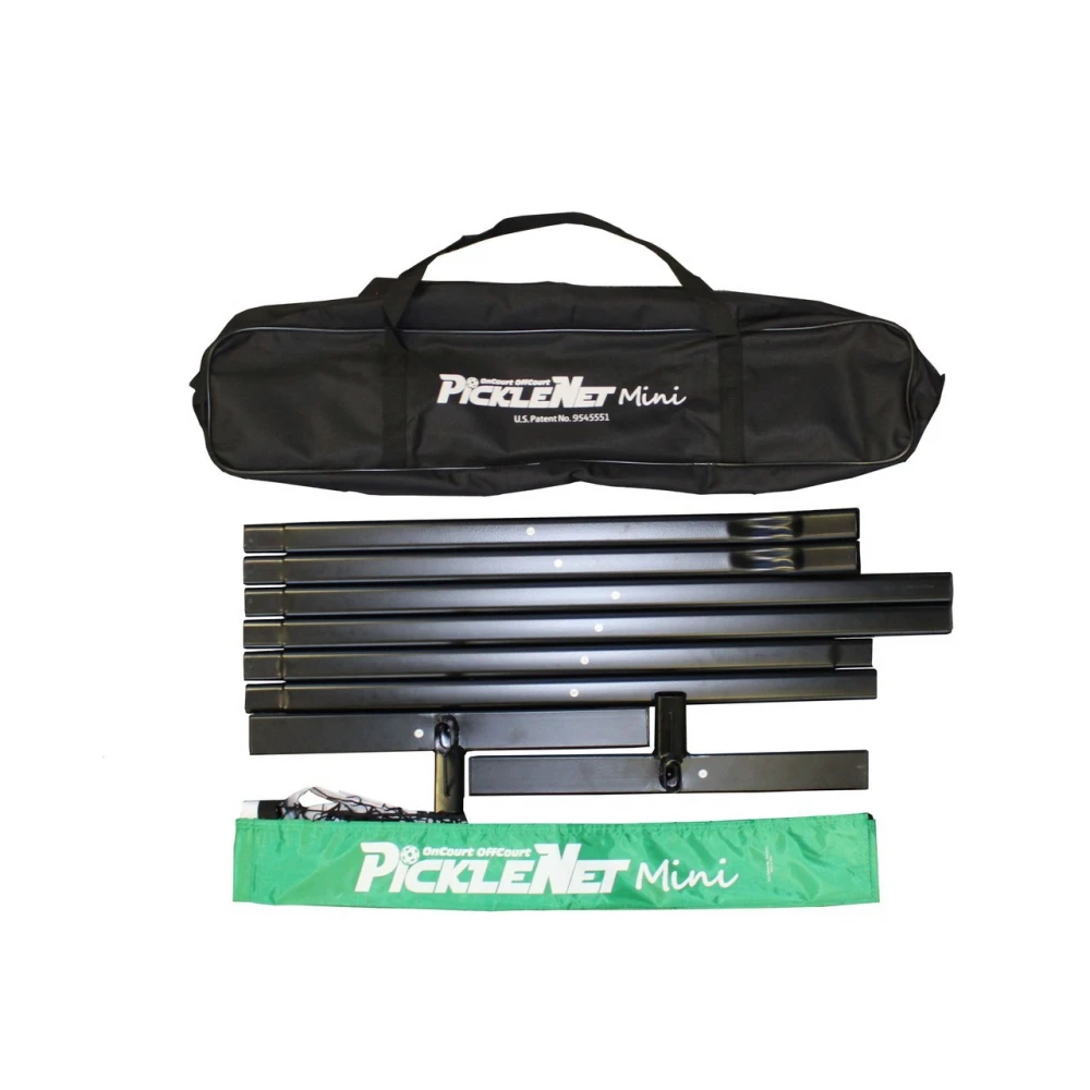 The OnCourt OffCourt PickleNet Mini Pickleball Net is a smaller version of the popular PickleNet system and is regulation pickleball height at 34” at the center of the net. Measuring 10 feet in length, it is a convenient net system for use on the court or any smaller-than-normal area. The PickleNet Mini is also made with our high quality patented oval tubing. Enjoy pickleball with this lightweight portable net system perfect for practice/play in a driveway, cul-de-sac, basement, garage, etc.