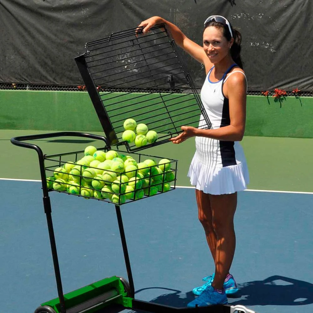 The MultiMower Tennis Mower and Teaching Cart is the best-value ball mower in the industry. It doubles as a teaching cart, stretching your budget like never before. It is easy to transport and is equipped with a unique ridged roller for a smooth and effortless ball pick-up. Plus, 2 extra back wheels make it easy to tilt and roll over small bumps on walkways. Ground level pick-up arms close for feeding or wheeling through gates. Another great feature is that the unit picks up regular tennis balls, plus red, orange, and green transition balls. The new and improved heavy-duty hinge design allows for the ball retrievable arms to fold, allowing the MultiMower to pass easily through normal doorways and gates and easily pick up balls along the fence and net. Plus it’s guaranteed to be jam-free and also works seamlessly on clay courts.